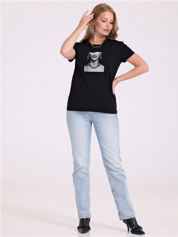 Футболка женская черная с принтом хлопок 100% Апрель 1ЖДФК2657001/1190/599/*/3022/*/*/* черный 84-164