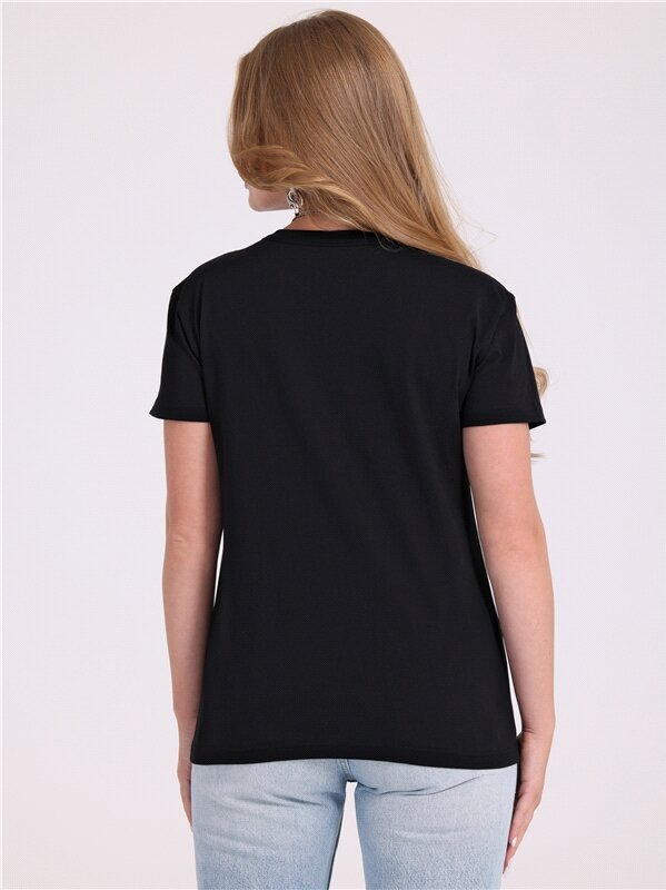 Футболка женская черная с принтом хлопок 100% Апрель 1ЖДФК3298001/1190/599/*/3436/*/*/* черный 108-164