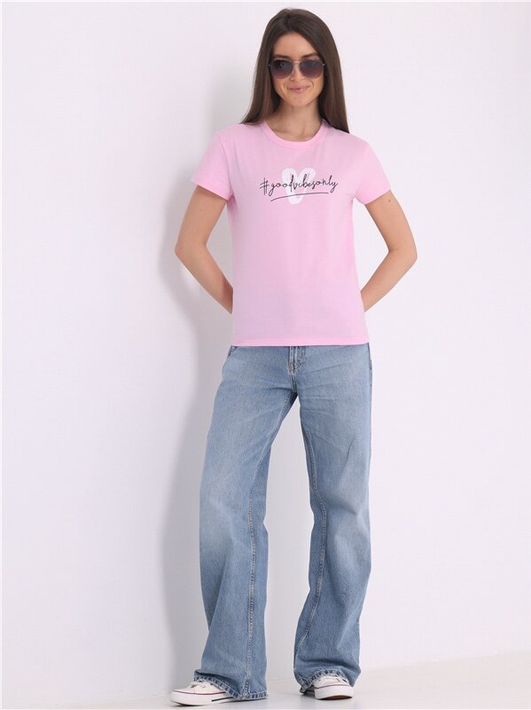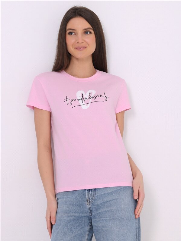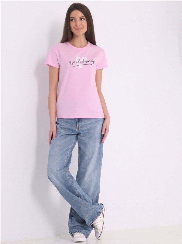 Футболка женская с принтом хлопок 100% Апрель 1ЖДФК2657001/1190/2408/*/2786/*/*/* розовый 100-164