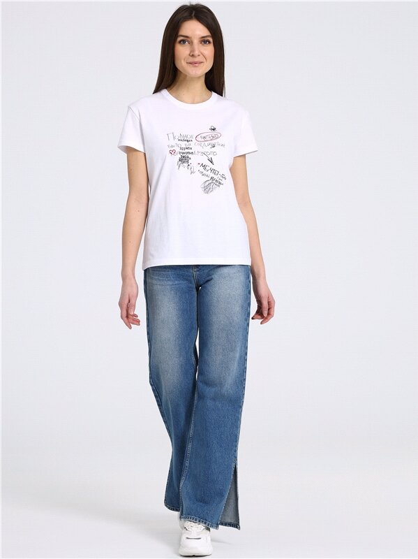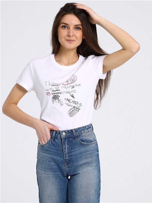 Футболка женская белая с принтом хлопок 100% Апрель 1ЖДФК2657001/ 1190/31/*/3355/*/*/* белый 100-164