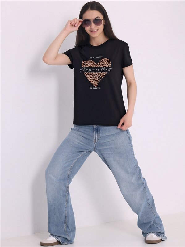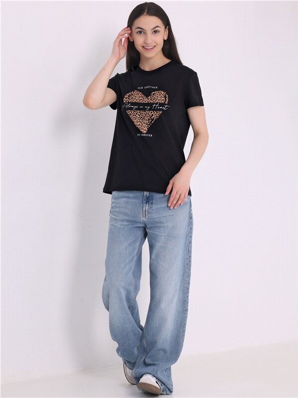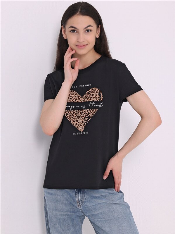 Футболка женская черная с принтом хлопок 100% Апрель 1ЖДФК3298001/1190/599/*/3436/*/*/* черный 108-164