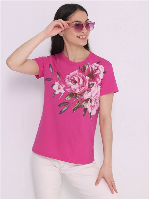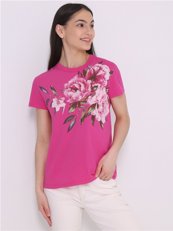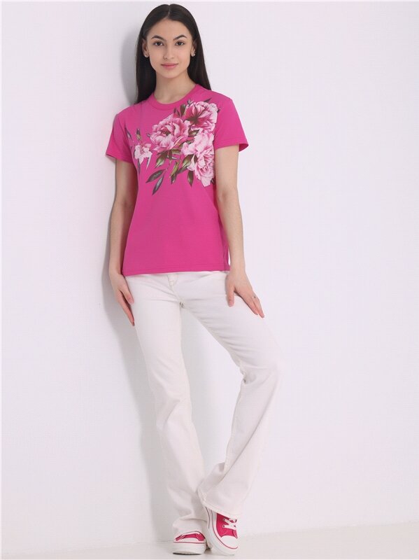 Футболка женская с принтом хлопок Апрель 1ЖДФК2657001/1190/1922/*/3460/*/*/* фуксия 84-164