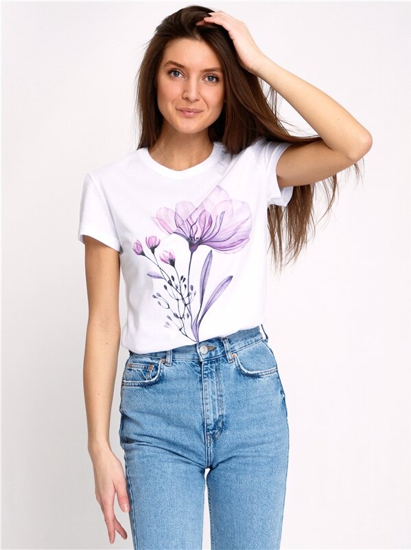 Футболка женская белая с принтом хлопок 100% Апрель 1ЖДФК3965001/1354/31/*/3235/*/*/* белый,фиолетовый 100-164
