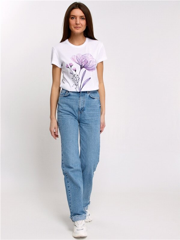 Футболка женская белая с принтом хлопок 100% Апрель 1ЖДФК3965001/1354/31/*/3235/*/*/* белый,фиолетовый 96-164
