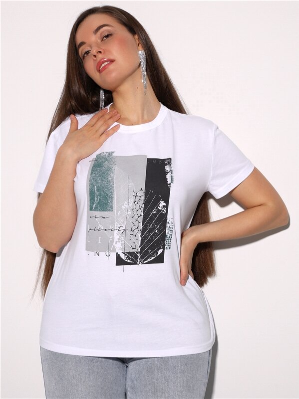 Футболка женская белая с принтом хлопок 100% Апрель 1ЖДФК2657001/ 1190/31/*/3412/*/*/* белый 84-164