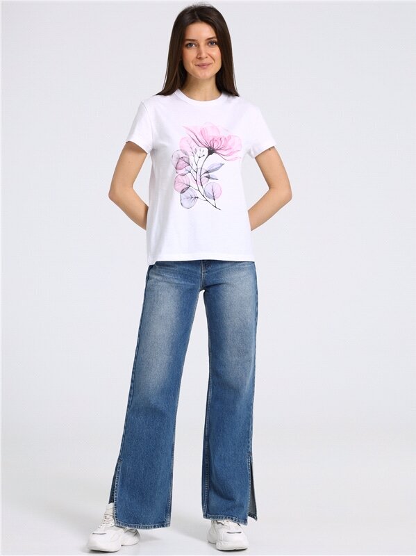 Футболка женская белая с принтом хлопок 100% Апрель 1ЖДФК3965001/1354/31/*/3085/*/*/* белый 84-164
