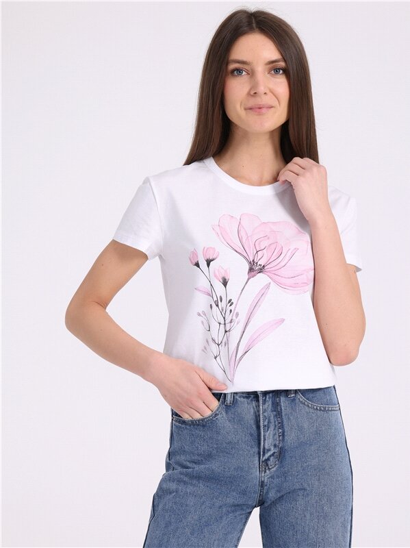 Футболка женская белая с принтом хлопок 100% Апрель 1ЖДФК3350001/ 1190/31/*/3350/*/*/* белый 84-164