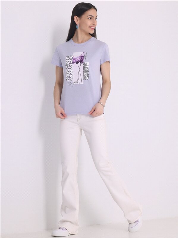 Футболка женская с принтом хлопок Апрель 1ЖДФК2657001/1190/2417/*/3447/*/*/* фиолетовый 84-164