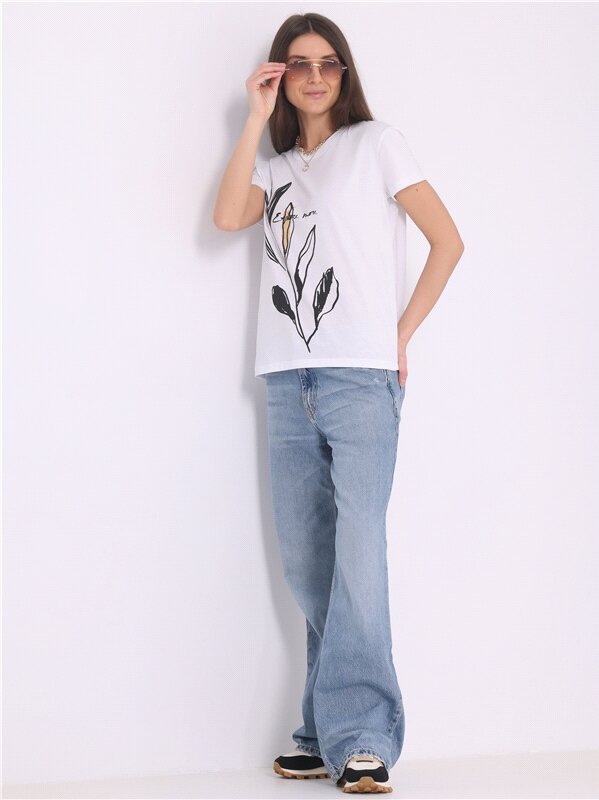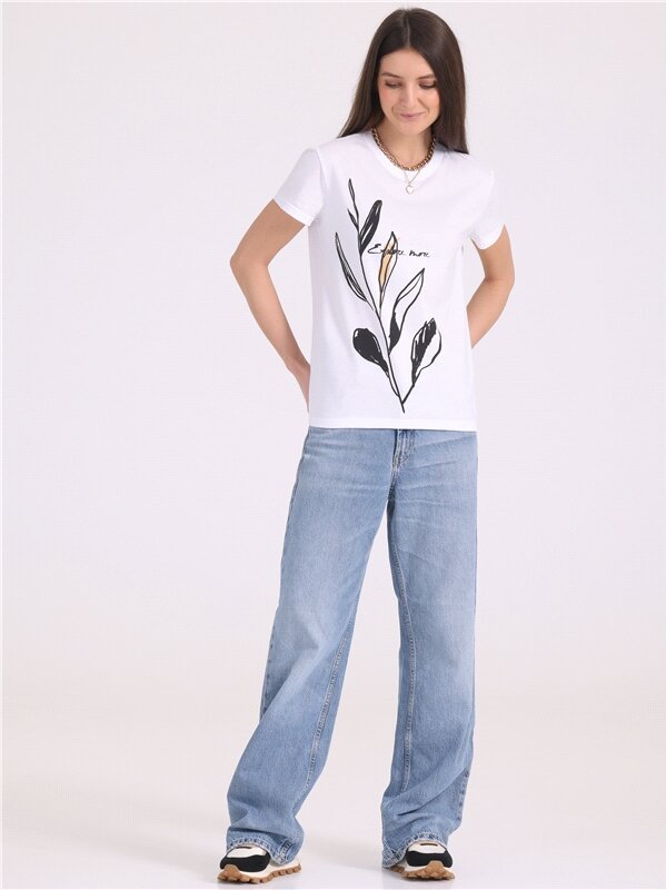 Футболка женская белая с принтом хлопок 100% Апрель 1ЖДФК3350001/1190/31/*/2986/*/*/* белый 84-164