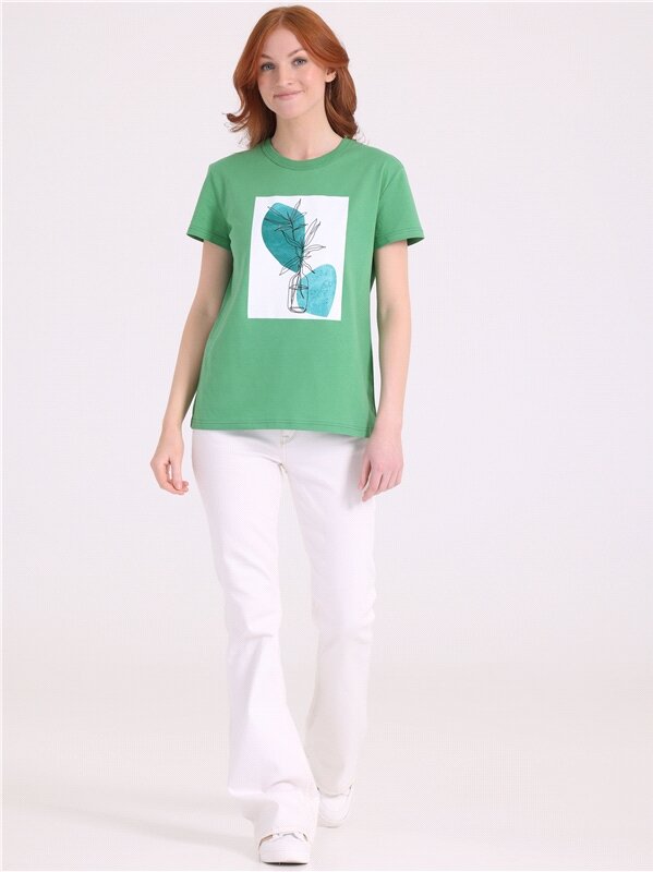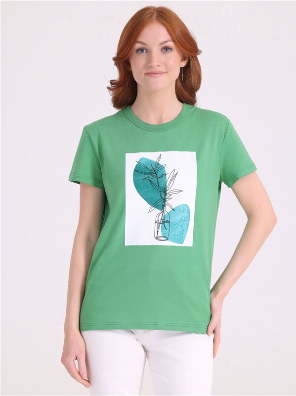 Футболка женская с принтом хлопок 100% Апрель 1ЖДФК3350001/1190/2027/*/3337/*/*/* зеленый 96-164