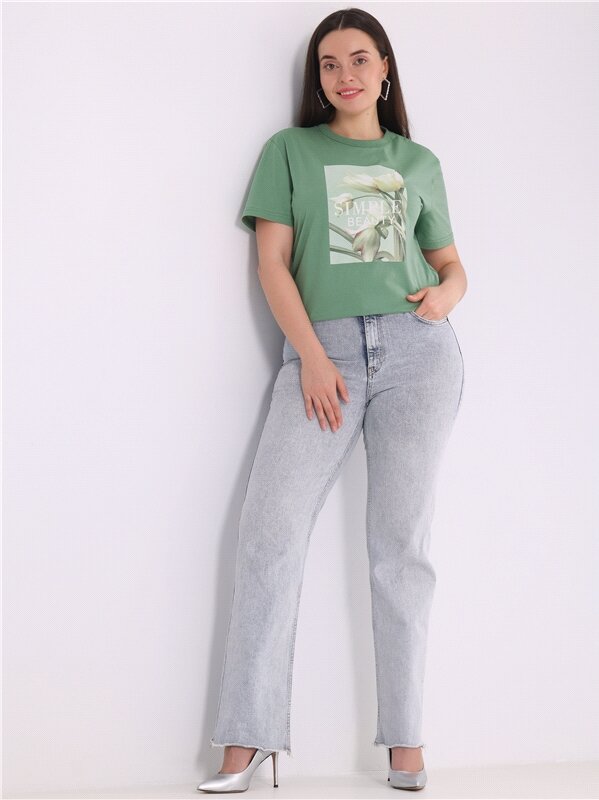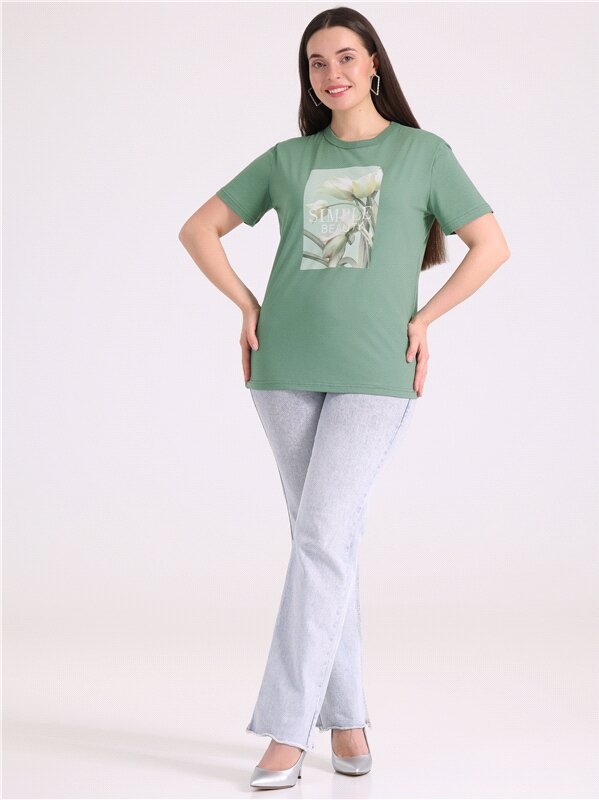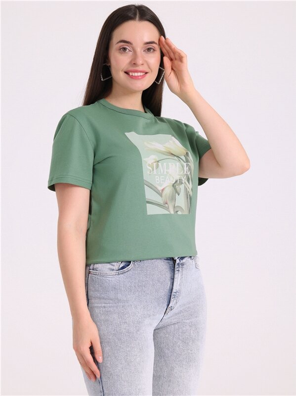Футболка женская с принтом хлопок 100% Апрель 1ЖДФК3350001/1190/2027/*/3337/*/*/* зеленый 96-164