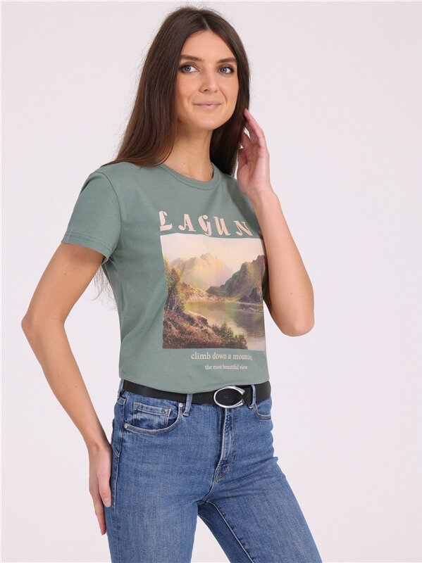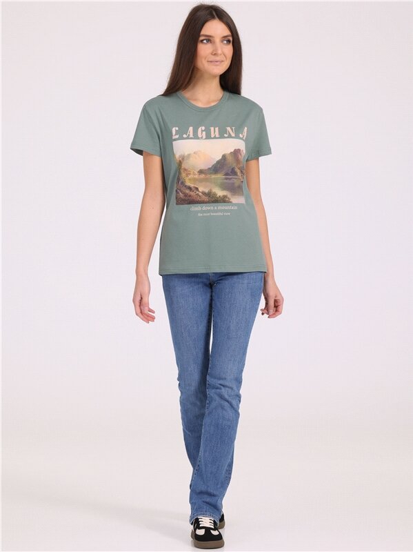 Футболка женская с принтом хлопок 100% Апрель 1ЖДФК3350001/1190/2027/*/3337/*/*/* зеленый 96-164