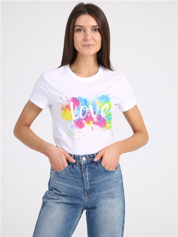 Купить Футболка женская белая с принтом хлопок 100% Апрель 1ЖДФК2657001/1190/31/*/2967/*/*/*/1 белый,мультиколор 96-164