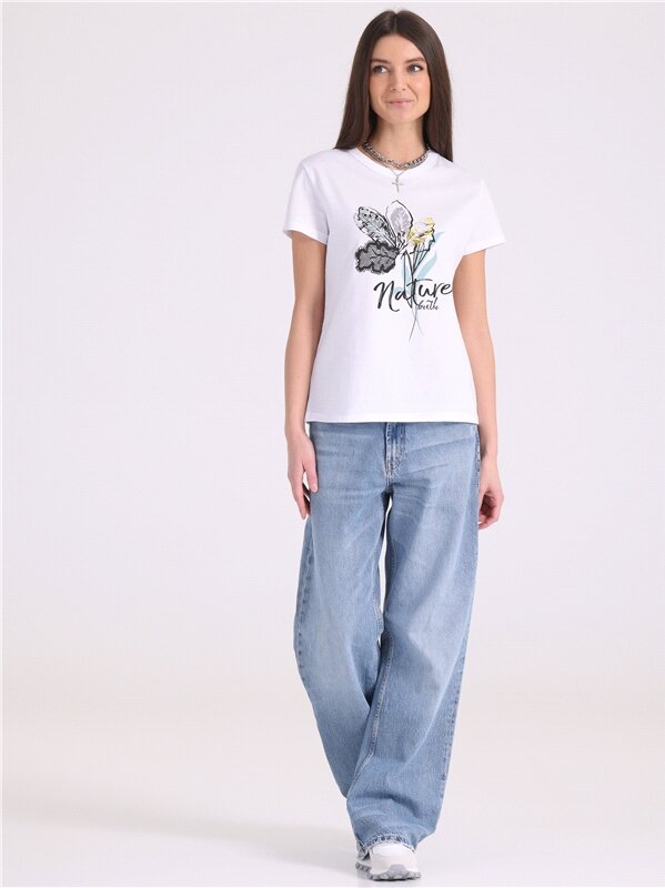 Футболка женская белая с принтом хлопок 100% Апрель 1ЖДФК3350001/ 1190/31/*/3350/*/*/* белый 84-164