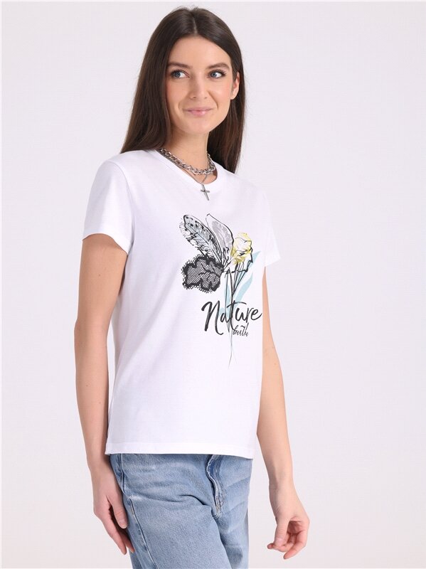 Футболка женская белая с принтом хлопок 100% Апрель 1ЖДФК3968001/1190/31/*/3284/*/*/* белый 84-164