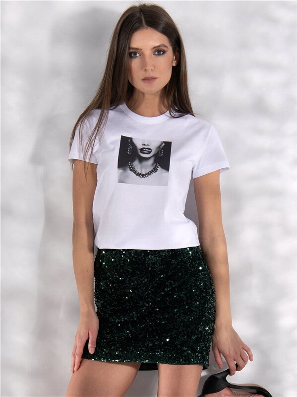 Футболка женская белая с принтом хлопок 100% Апрель 1ЖДФК2657001/1190/31/*/3446/*/*/* белый,черный 84-164