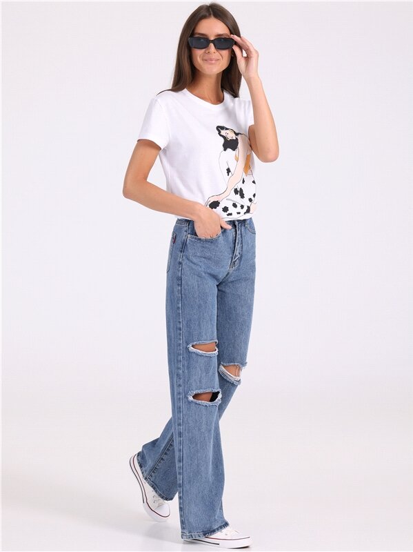 Футболка женская белая с принтом хлопок 100% Апрель 1ЖДФК3350001/ 1190/31/*/3350/*/*/* белый,черный,голубой 96-164