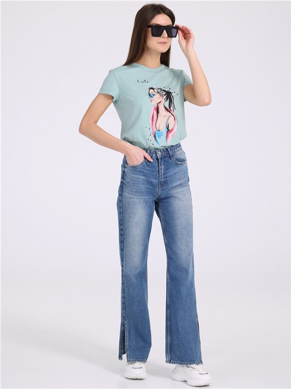 Футболка женская с принтом хлопок 100% Апрель 1ЖДФК3350001/1190/2419/*/3333/*/*/* голубой 88-164
