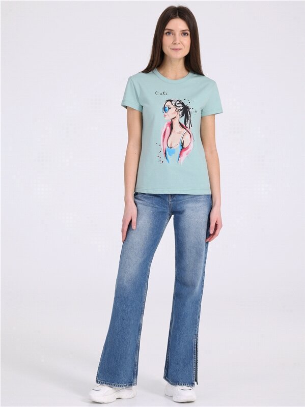Футболка женская с принтом хлопок 100% Апрель 1ЖДФК3968001/1190/2220/*/3261/*/*/* зеленый 84-164