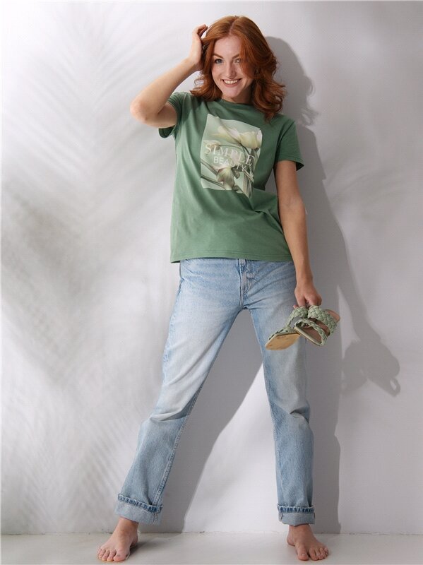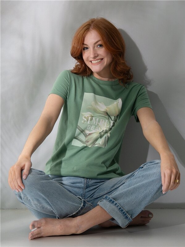Купить Футболка женская с принтом хлопок 100% Апрель 1ЖДФК2657001/1190/2509/*/3426/*/*/* зеленый 84-164
