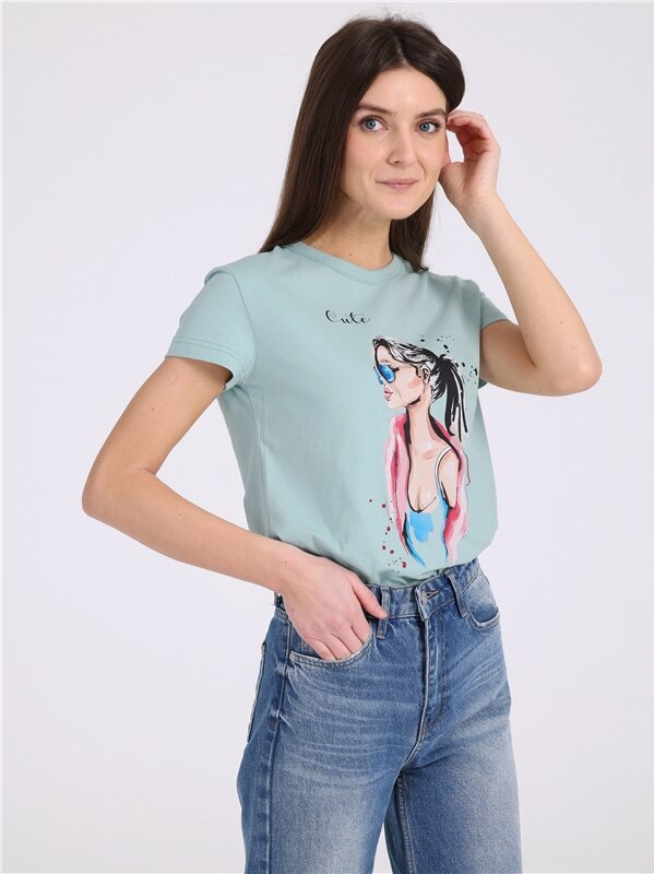 Футболка женская с принтом хлопок 100% Апрель 1ЖДФК3350001/1190/2027/*/3337/*/*/* зеленый 96-164