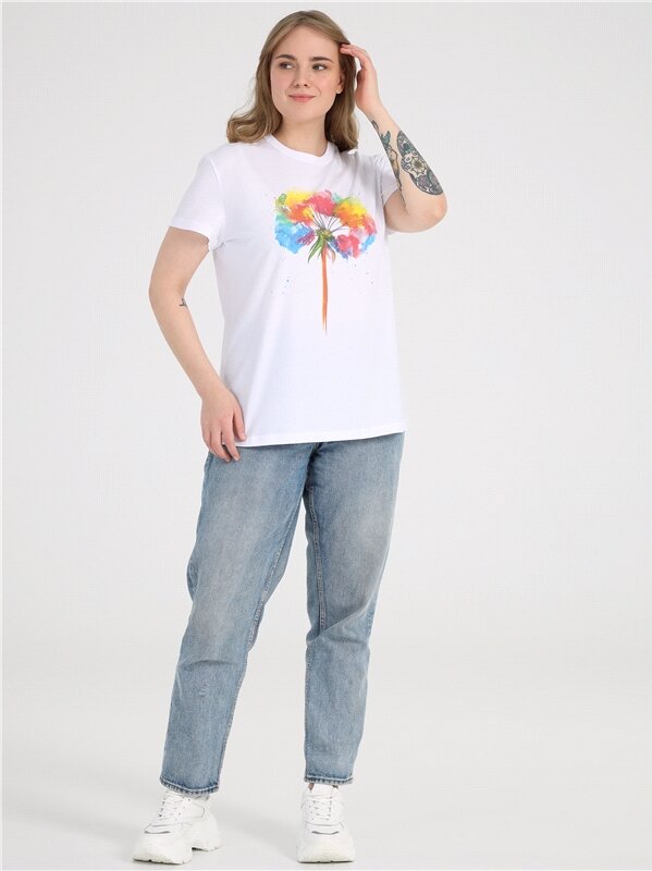 Футболка женская белая с принтом хлопок 100% Апрель 1ЖДФК2657001/1190/31/*/2967/*/*/*/1 белый,мультиколор 100-164