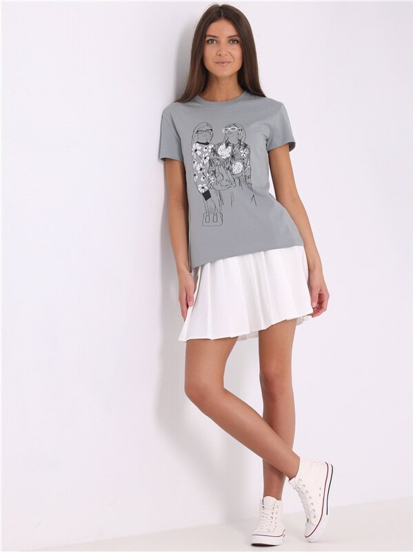 Купить Футболка женская с принтом хлопок 100% Апрель 1ЖДФК2657001/1190/2507/*/3373/*/*/* серый,белый 84-164