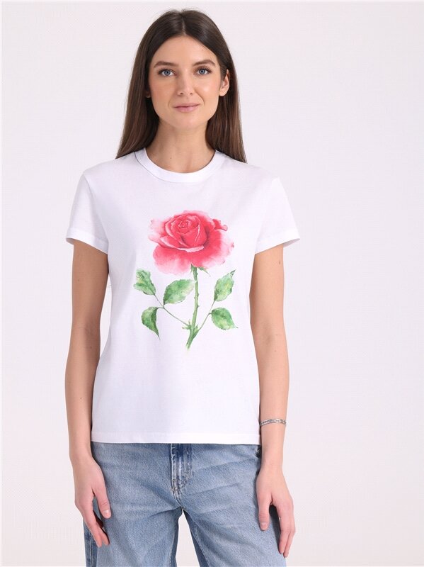 Футболка женская белая с принтом хлопок 100% Апрель 1ЖДФК3965001/1354/31/*/3257/*/*/* белый,розовый 84-164
