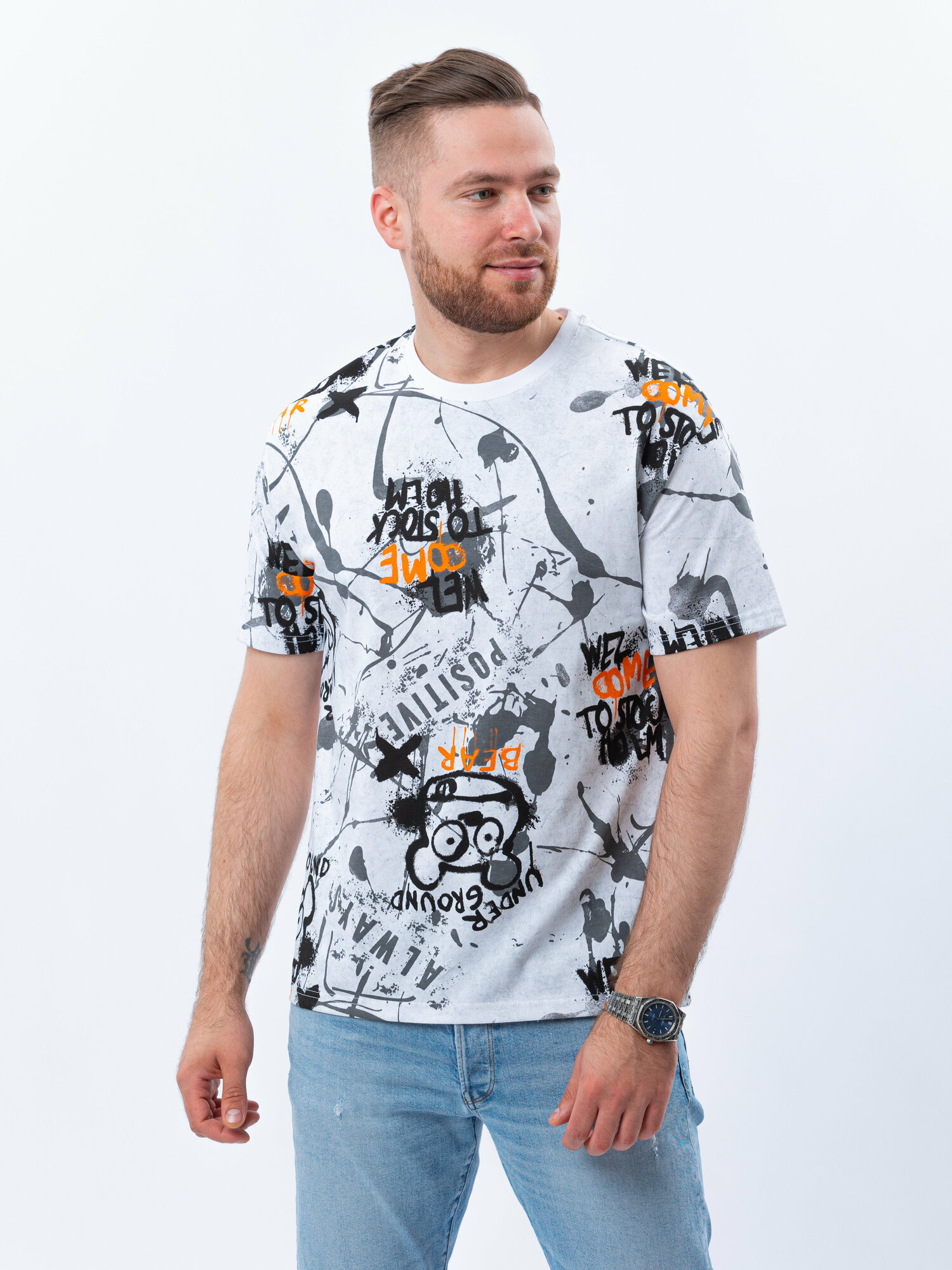 Футболка мужская белая с надписями 737 1 размер L (48)