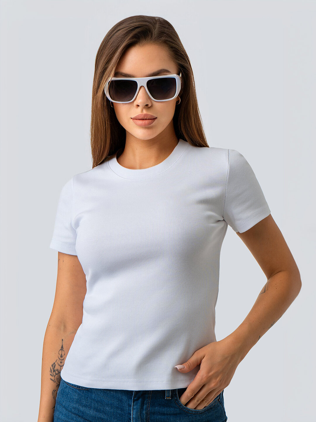 Футболка в рубчик однотонная HappyFox HF3520 белый 42