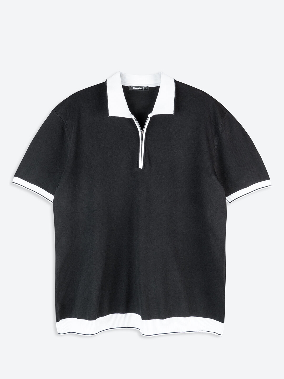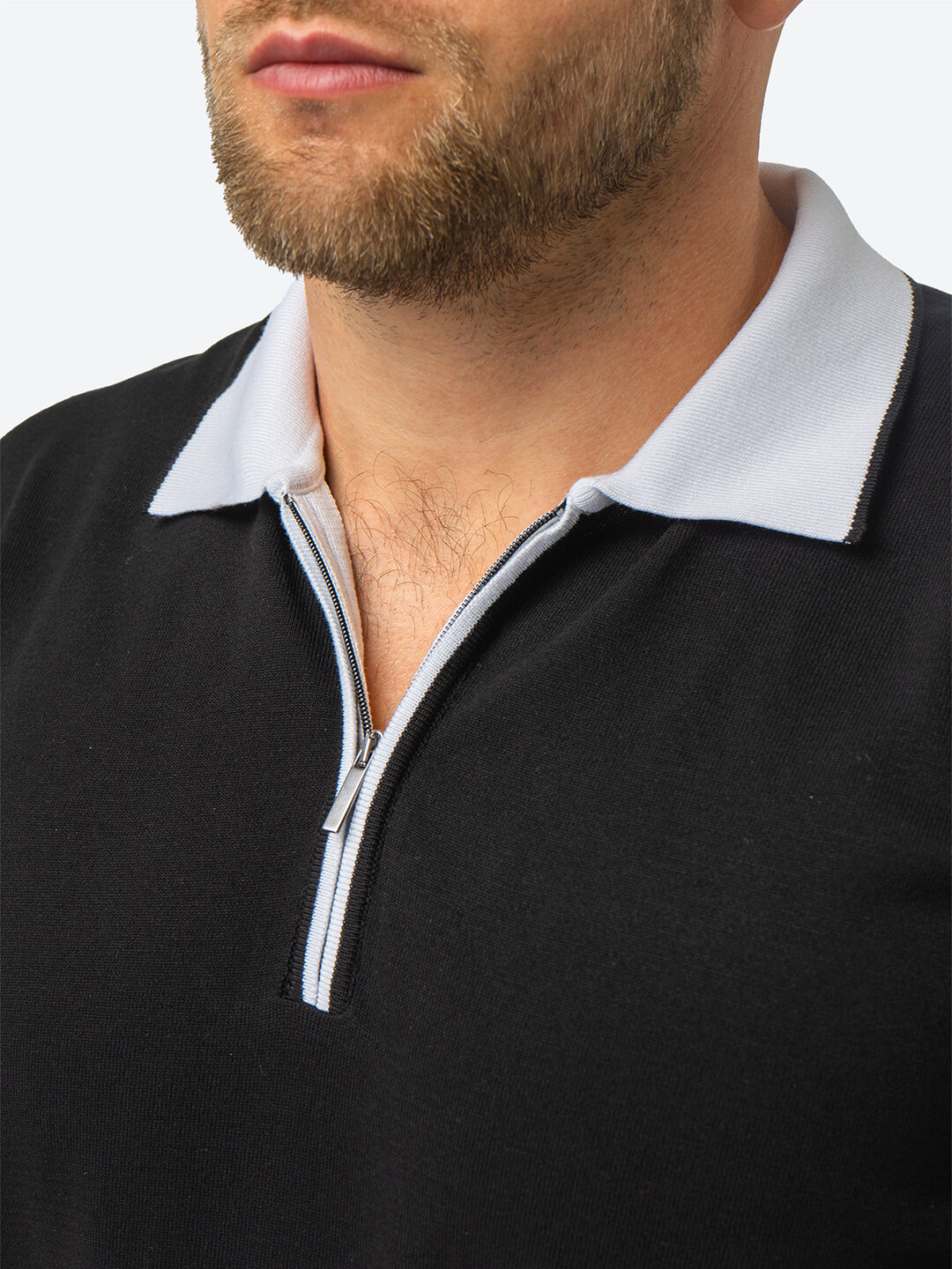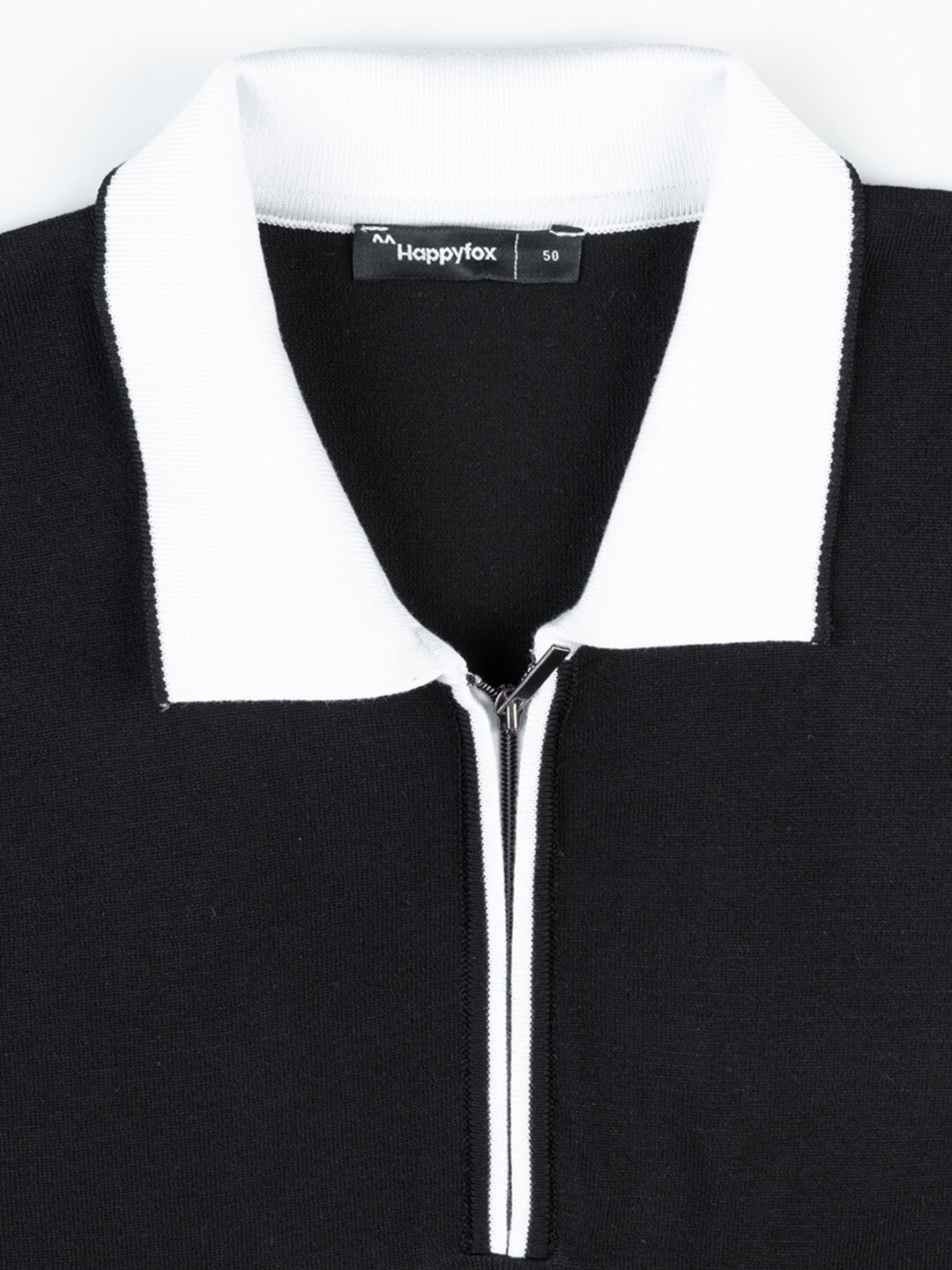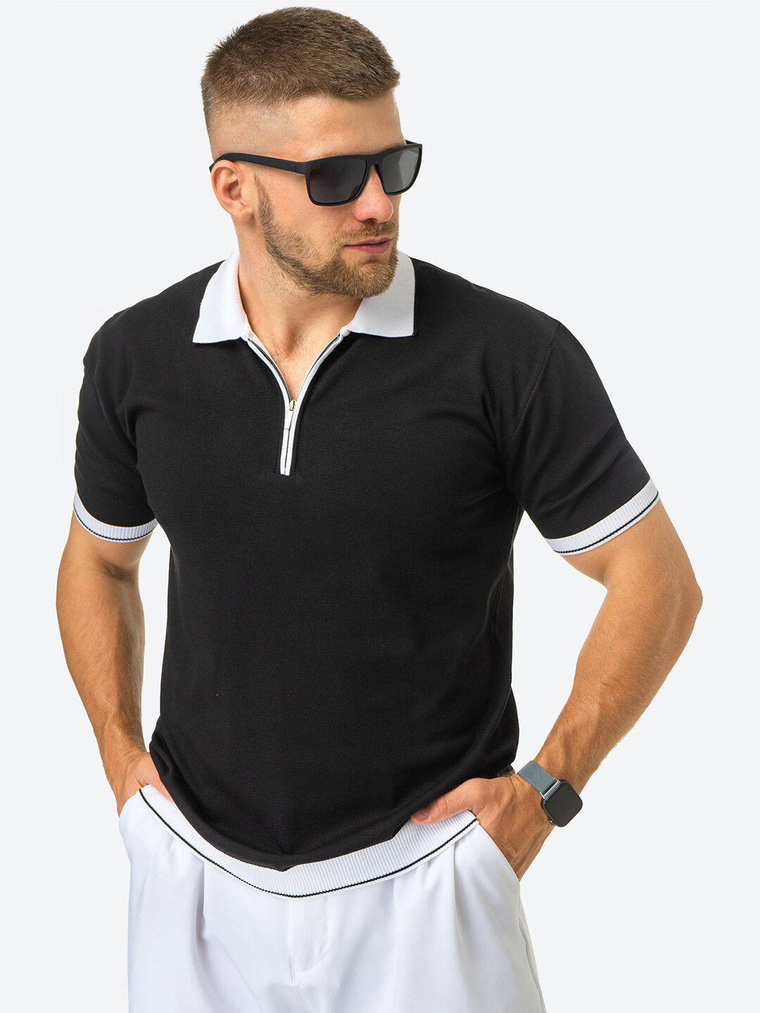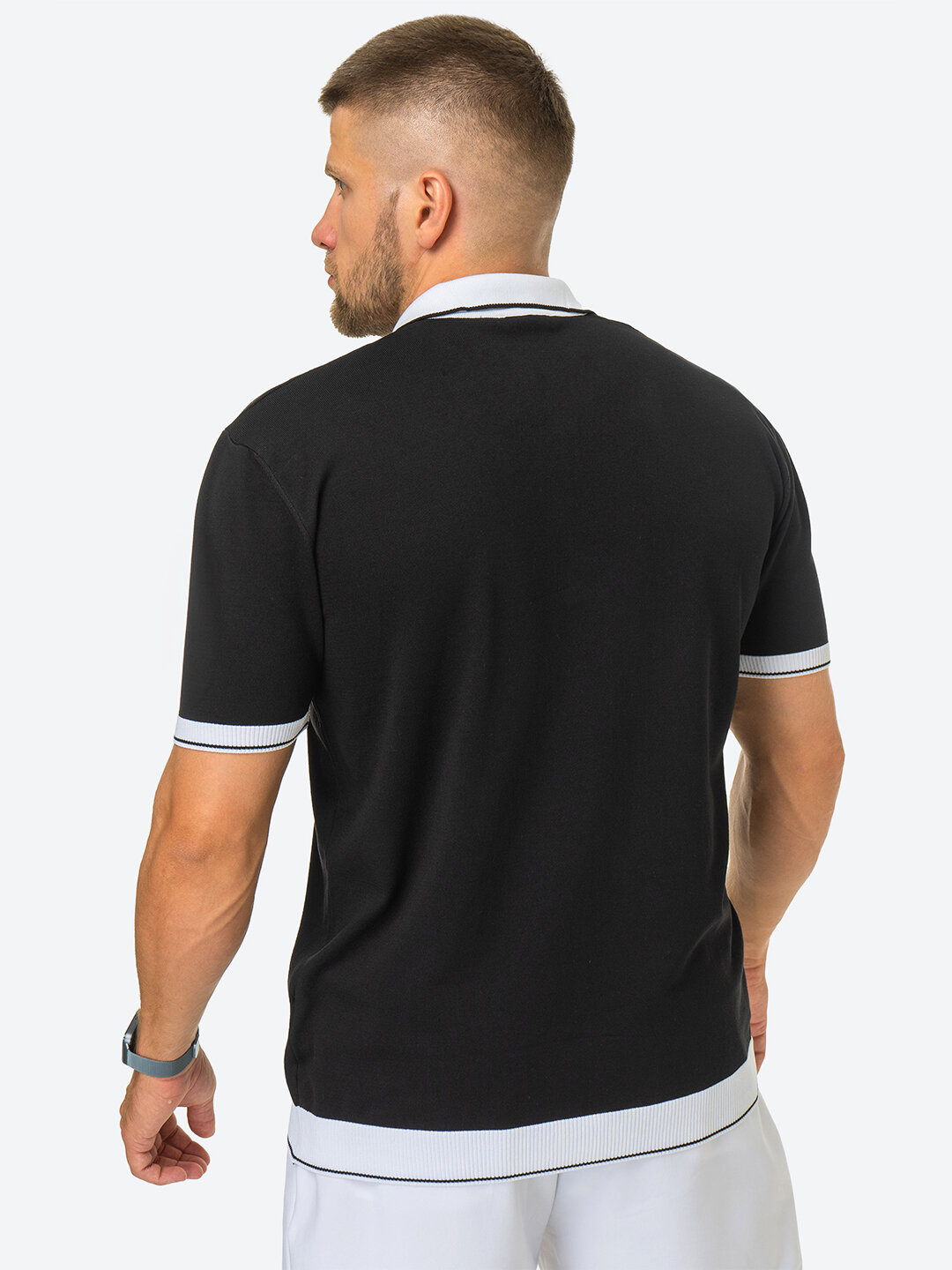 Футболка поло мужская вязаный трикотаж HappyFox HF14005 черный.белый 48