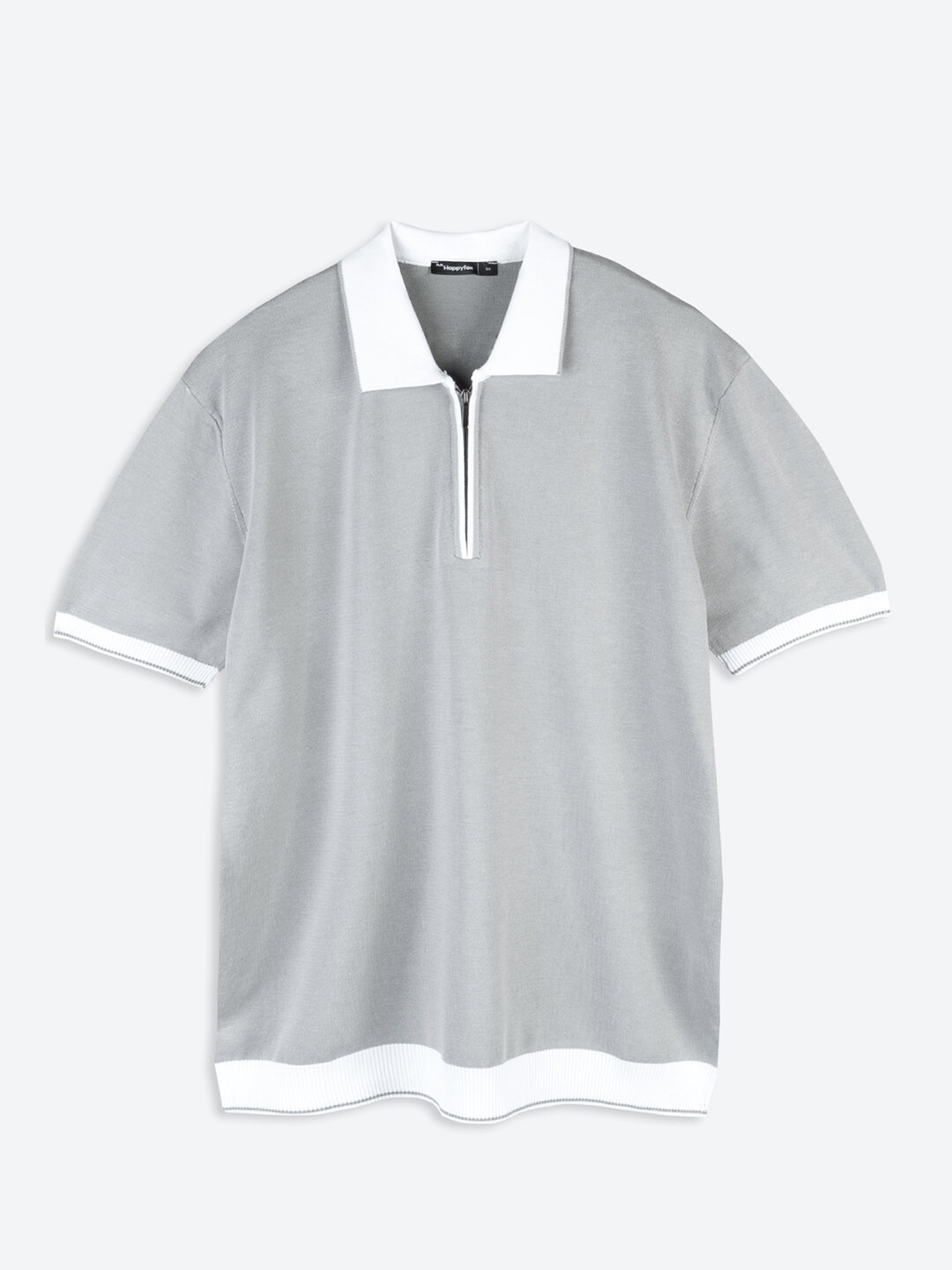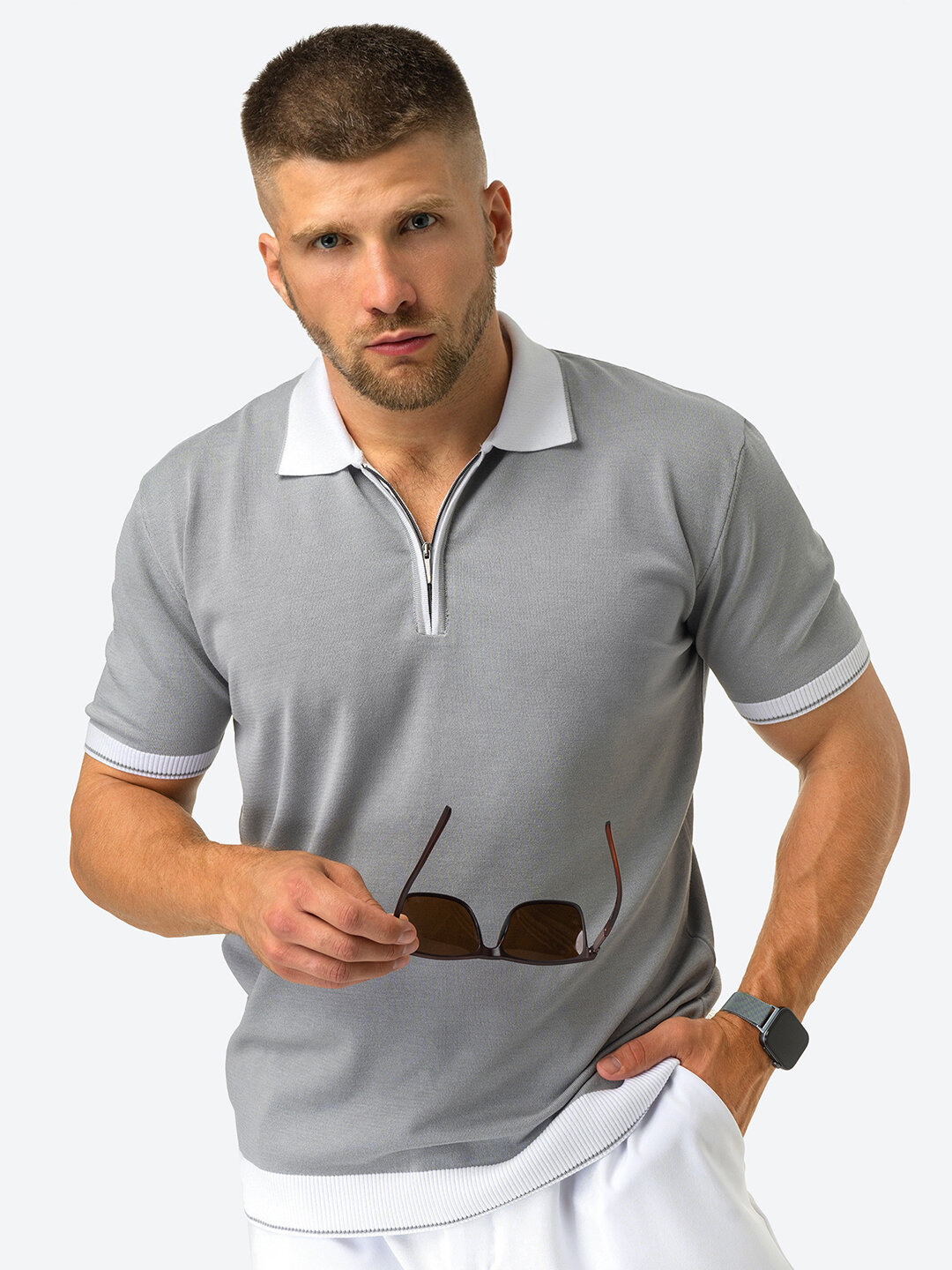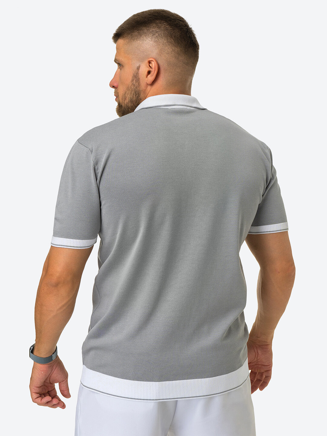 Футболка поло мужская вязаный трикотаж HappyFox HF14005 серый.белый 52