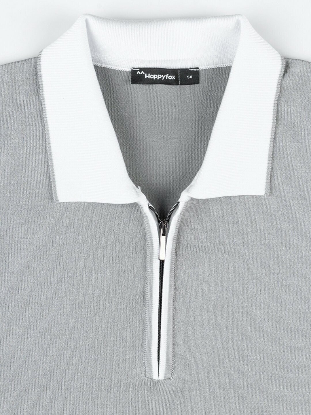 Футболка поло мужская вязаный трикотаж HappyFox HF14005 серый.белый 50