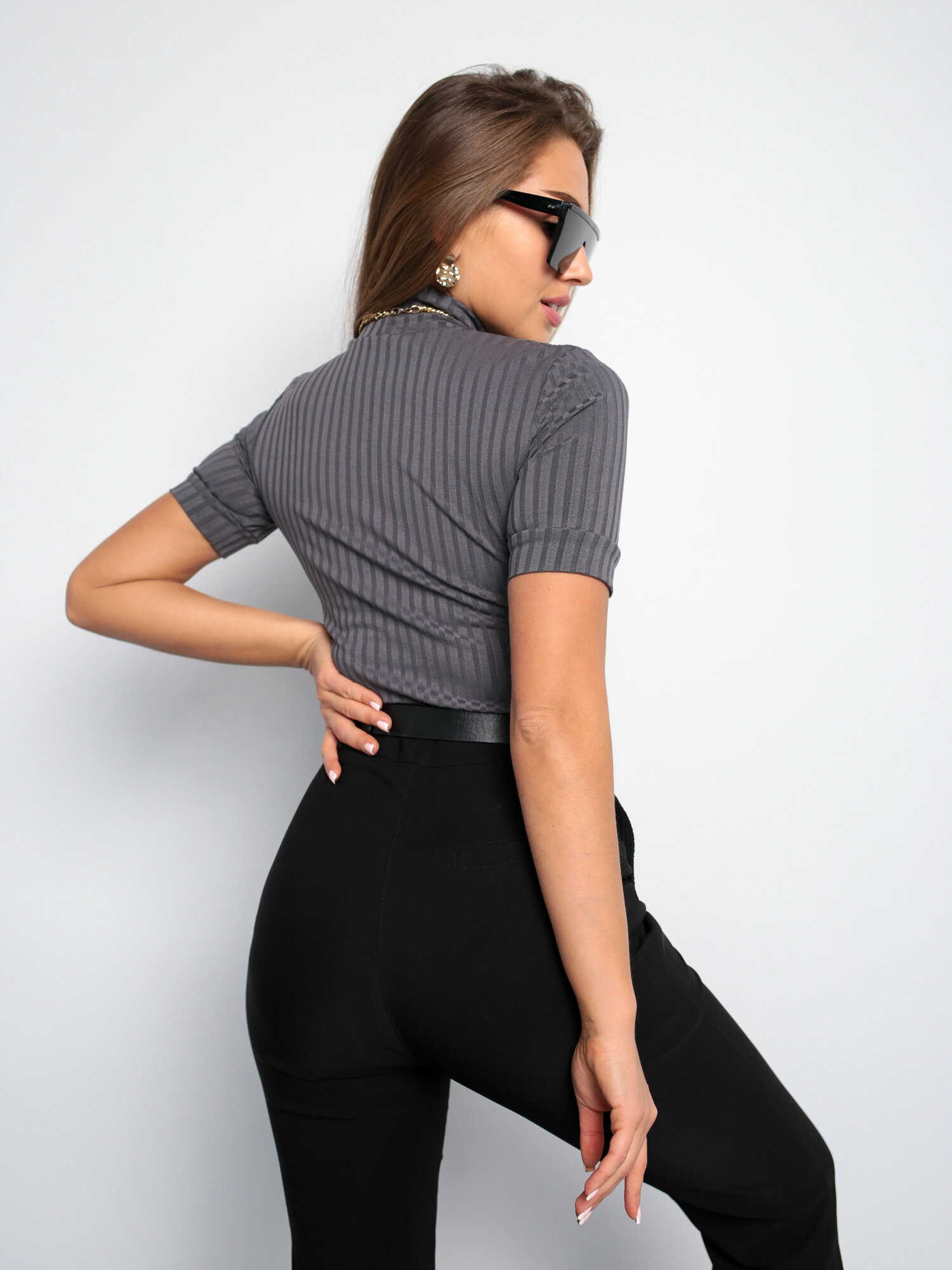 Женская водолазка лапша с коротким рукавом, повседневная, София37, цвет серый, размер 46