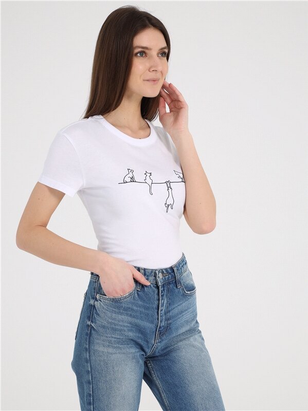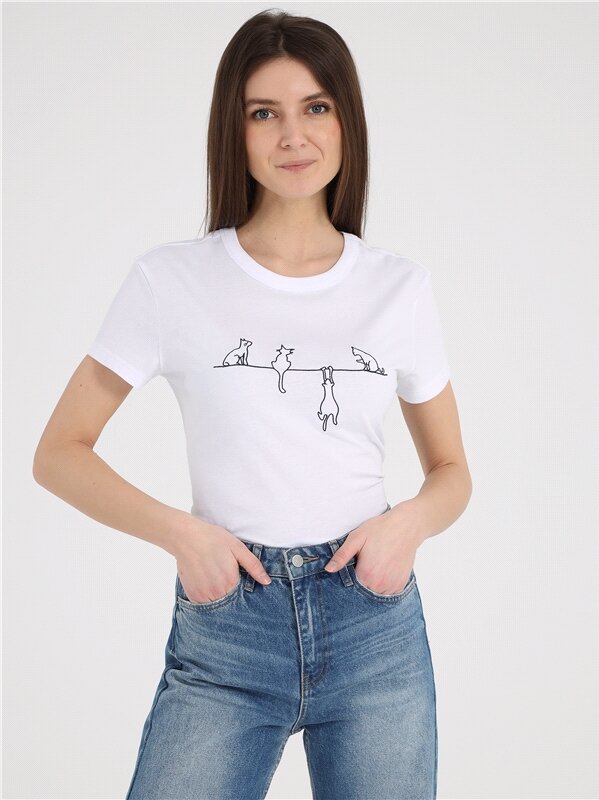 Футболка женская белая с принтом хлопок 100% Апрель 1ЖДФК2692001/1190/31/*/3224/*/*/* белый 84-164