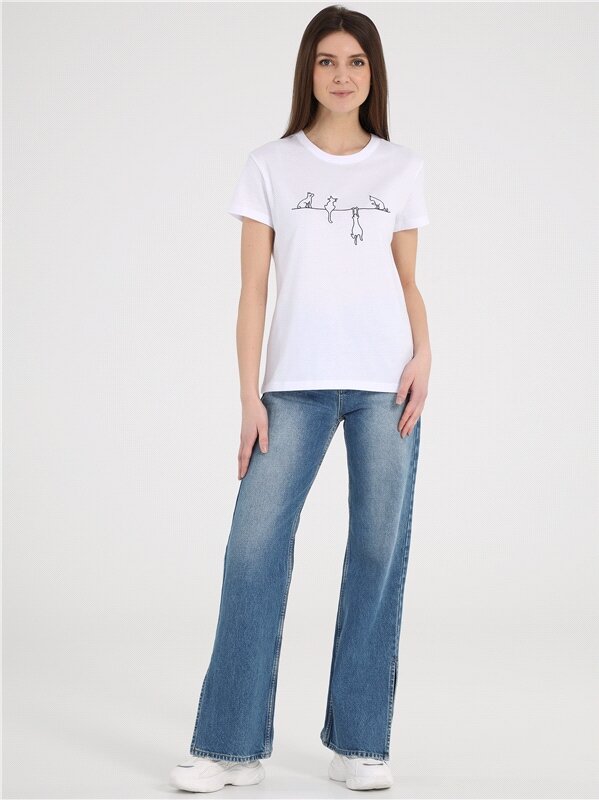 Футболка женская белая с принтом хлопок 100% Апрель 1ЖДФК2692001/1190/31/*/3224/*/*/* белый,черный 84-164