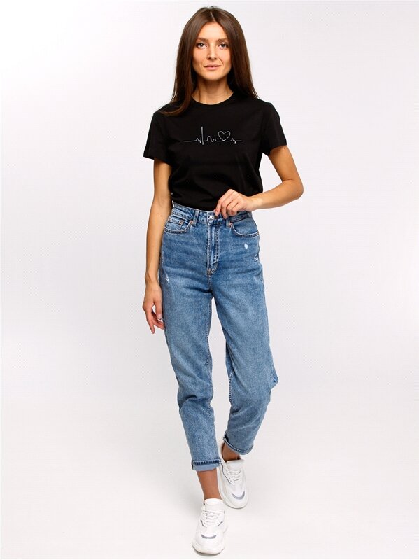 Футболка женская черная с вышивкой хлопок 100% Апрель 1ЖДФК3792001/1354/599/*/3206/*/*/* черный,белый 100-164