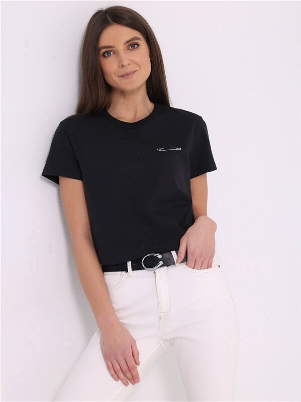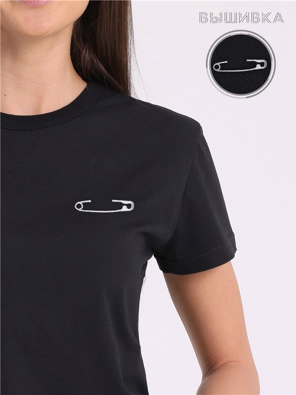 Футболка женская черная с вышивкой хлопок 100% Апрель 1ЖДФК3792001/1354/599/*/3206/*/*/* черный 92-164