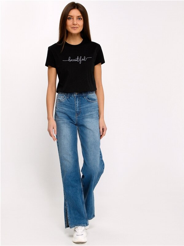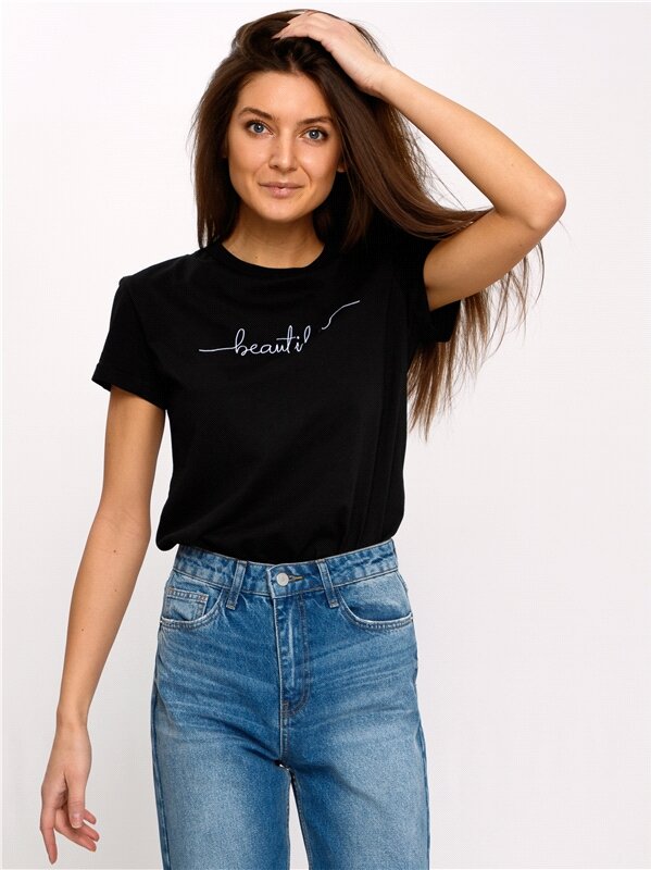 Футболка женская черная с вышивкой хлопок 100% Апрель 1ЖДФК3792001/1354/599/*/3206/*/*/* черный 100-164