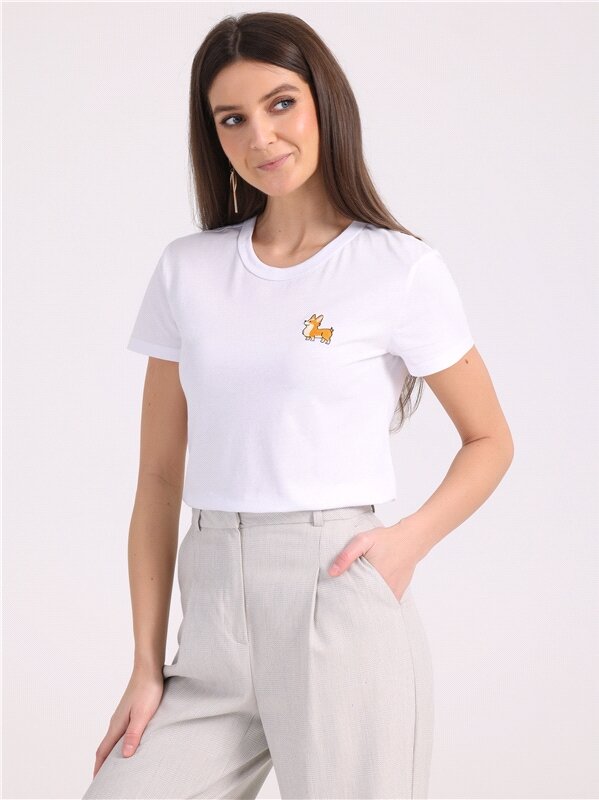 Футболка женская белая с вышивкой хлопок 100% Апрель 1ЖДФК2692001/1190/31/*/2631/*/*/* белый 84-164