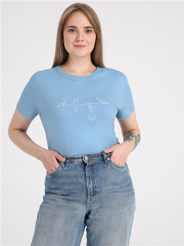 Футболка женская с принтом хлопок 100% Апрель 1ЖДФК2692001/1190/2419/*/3340/*/*/* голубой 96-164