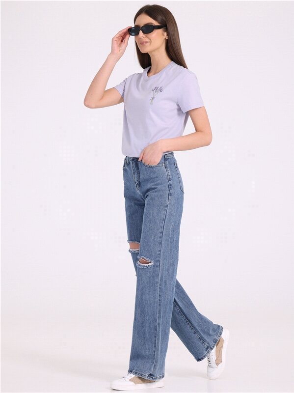 Футболка женская с вышивкой 100% хлопок Апрель 1ЖДФК4256001/1190/2419/*/3089/*/*/* голубой 108-164