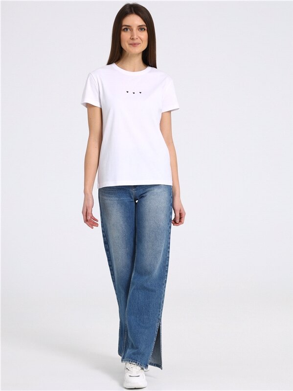 Футболка женская белая с вышивкой хлопок 100% Апрель 1ЖДФК3296001/1190/31/*/2631/*/*/*/1 белый,черный 120-164