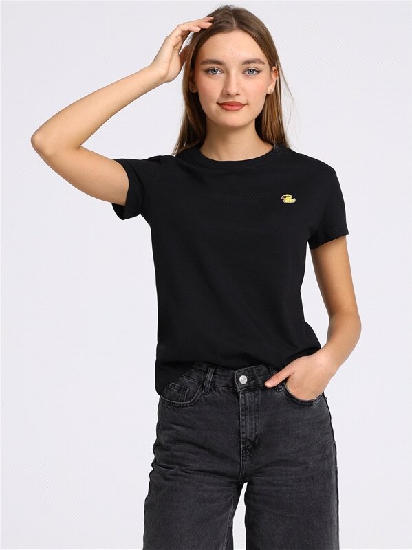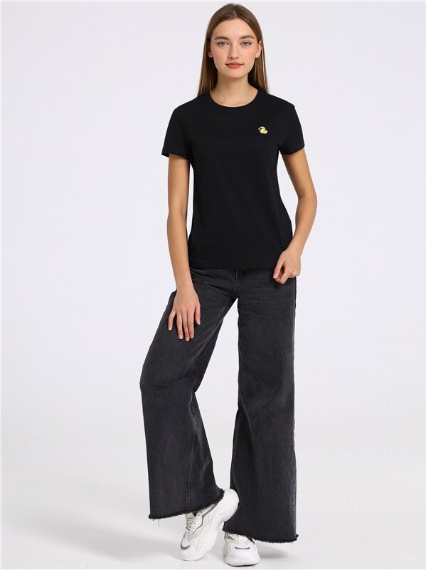 Футболка женская черная с вышивкой хлопок 100% Апрель 1ЖДФК3792001/1354/599/*/3206/*/*/* черный 100-164