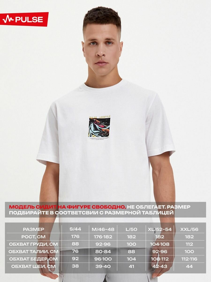 Мужская белая футболка c-neck c принтом Pulse 41MP-T5200 интересное: