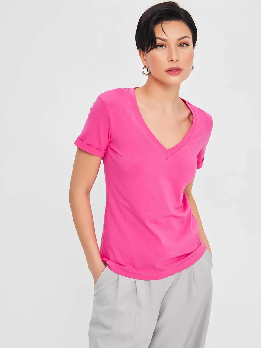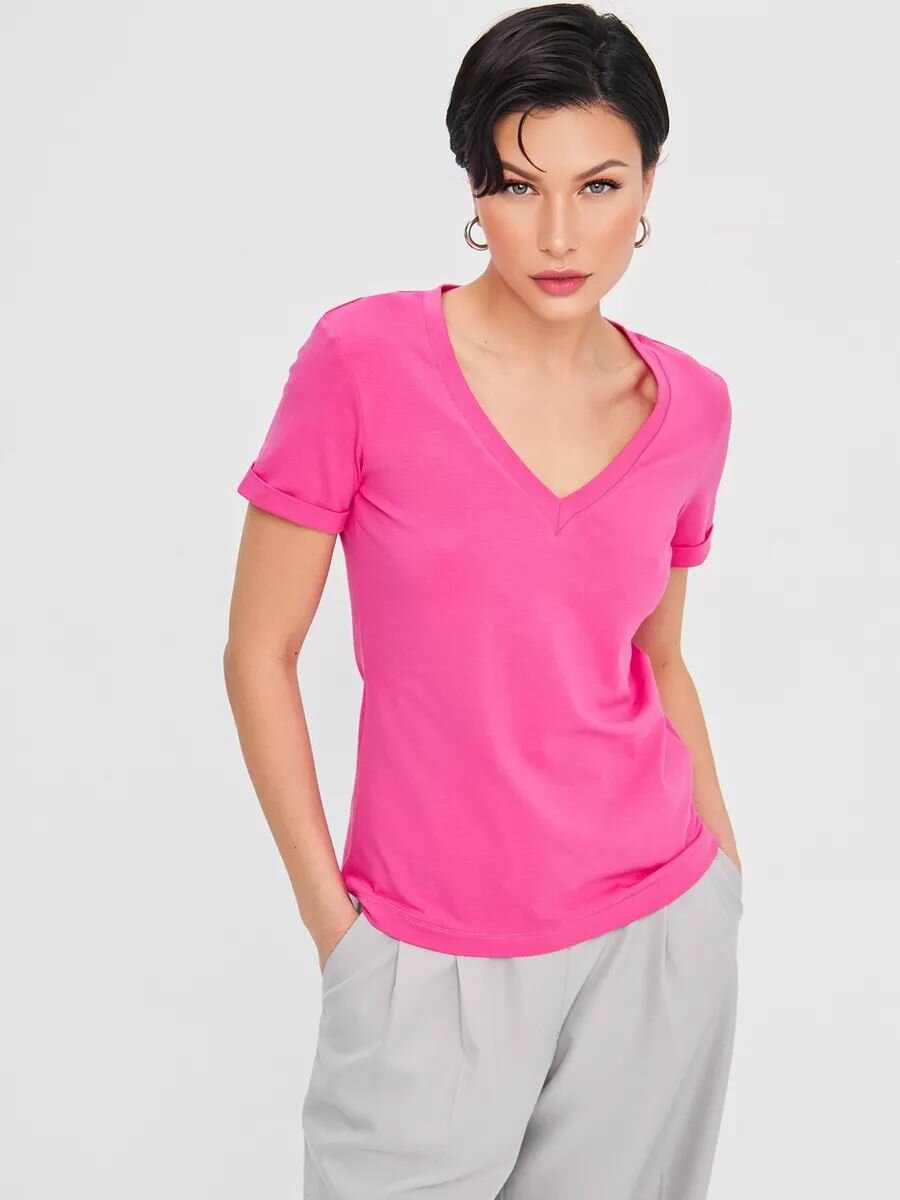 1015K1 Футболка с глубоким V-вырезом HIGH TEMP, Фуксия, 42/44