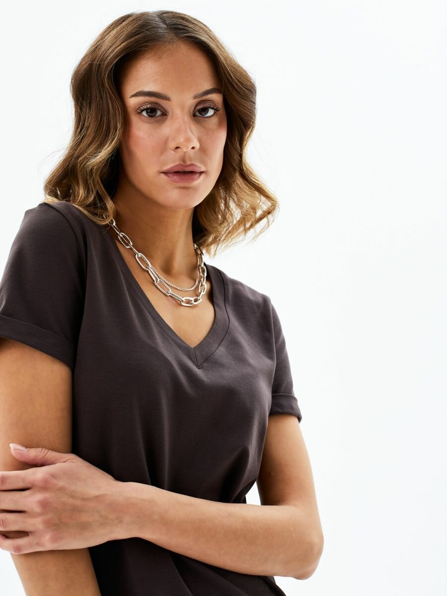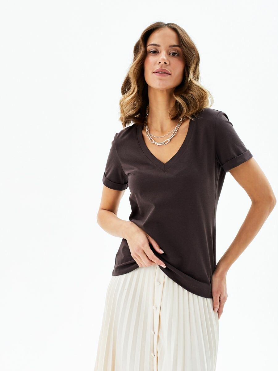 1015K1 Футболка с глубоким V-вырезом HIGH TEMP, Горький шоколад, 42/44