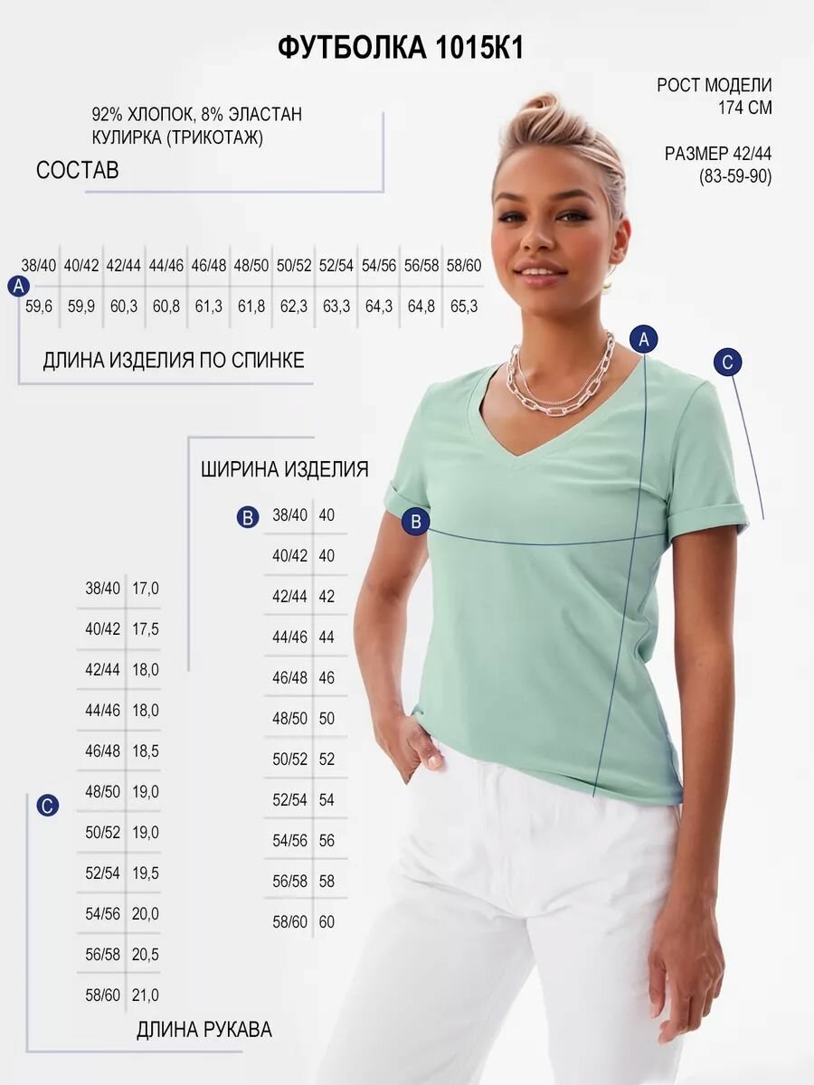 1015K1 Футболка с глубоким V-вырезом HIGH TEMP, Мятный, 44/46