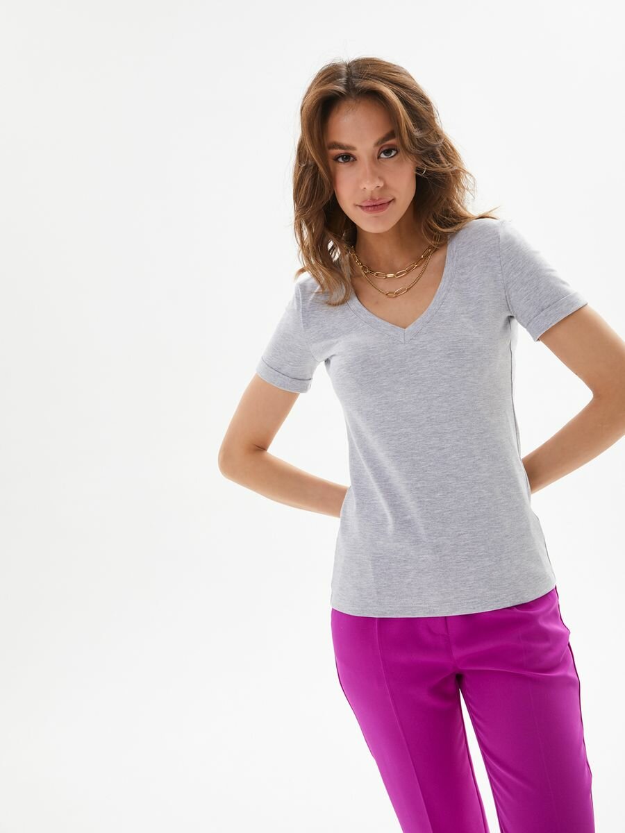 Купить 1015K1 Футболка с глубоким V-вырезом HIGH TEMP, Серый меланж, 52/54