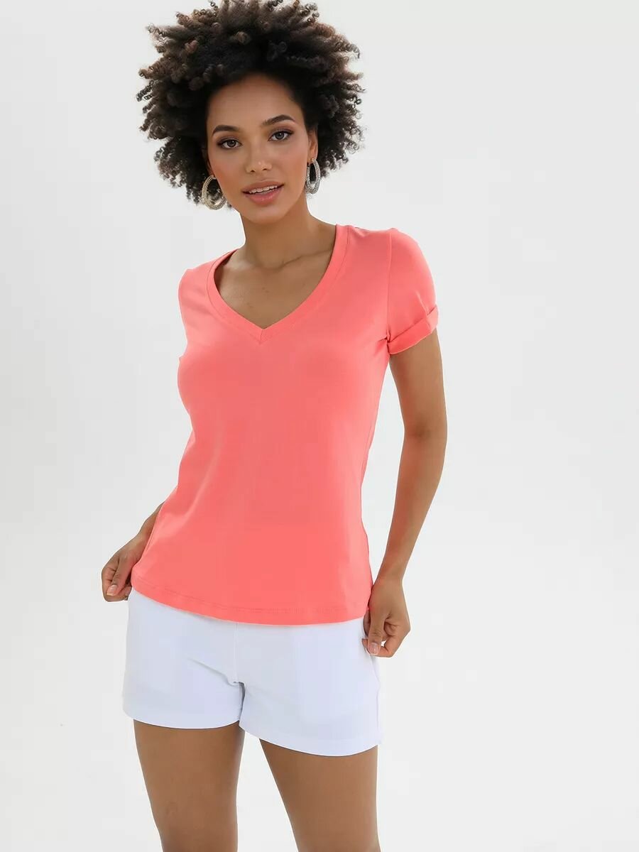 Купить 1015K1 Футболка с глубоким V-вырезом HIGH TEMP, Коралловый, 38/40